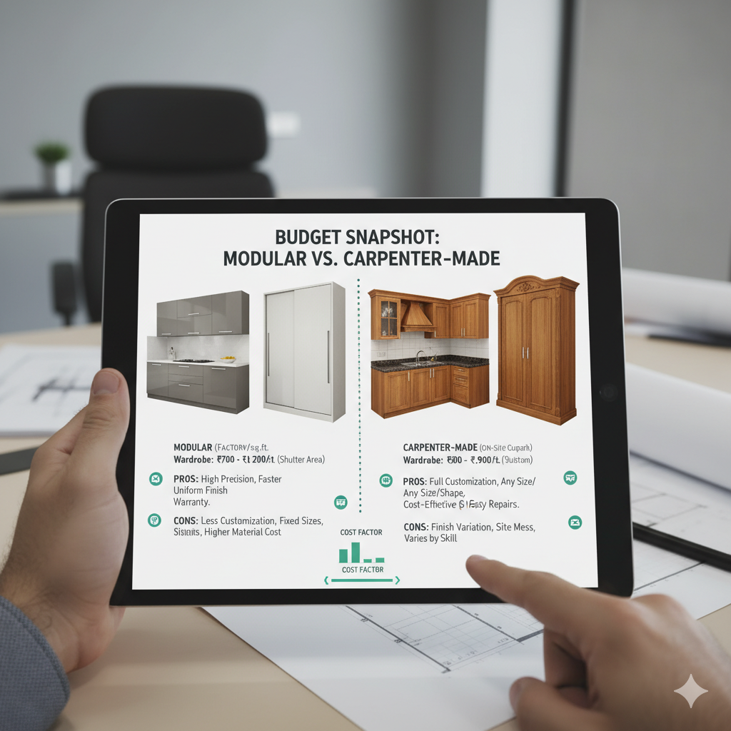 “I want full interiors – kitchen, wardrobes, living – in ₹7-8L, all in.”