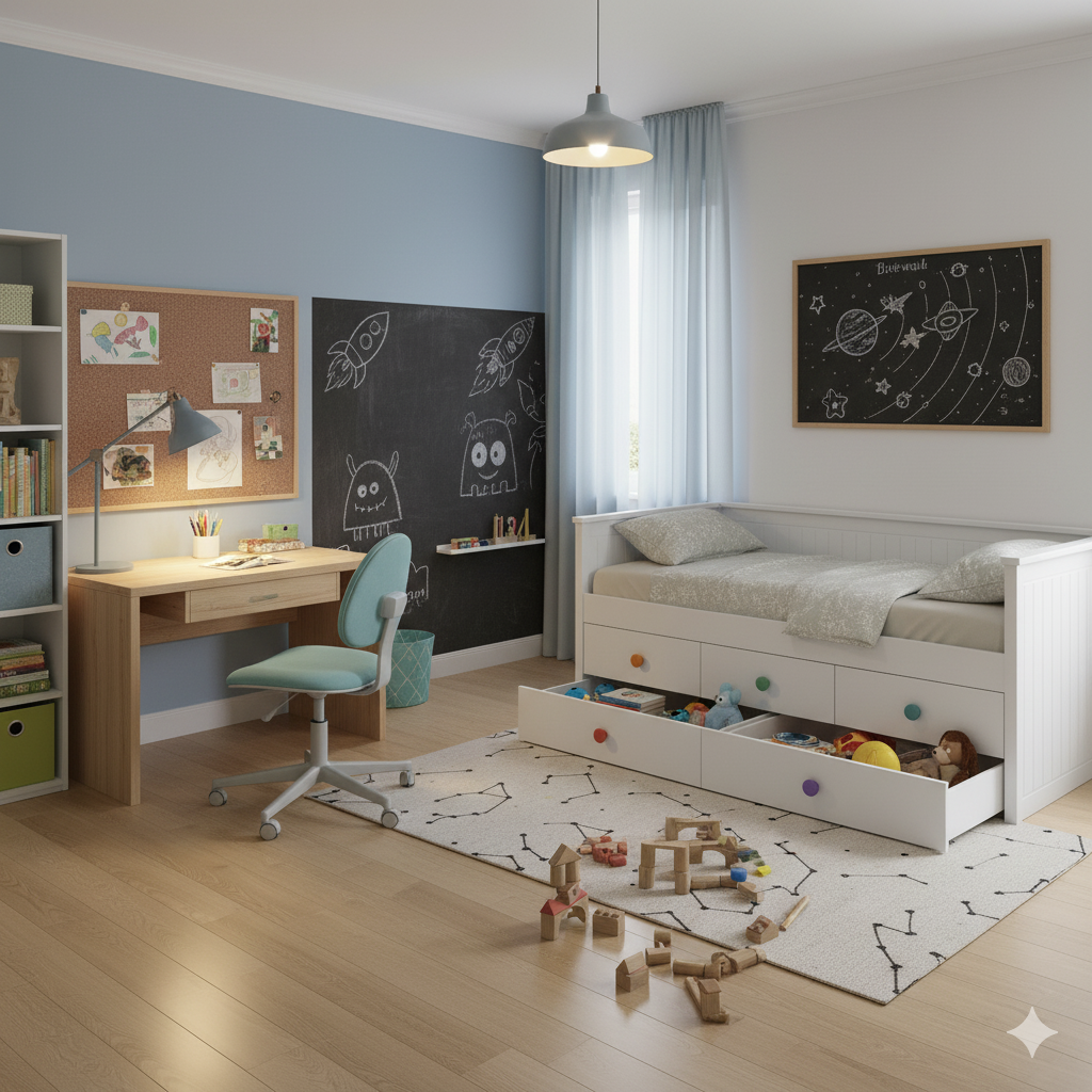 Investing in adaptable furniture ensures the room evolves with your child’s needs: