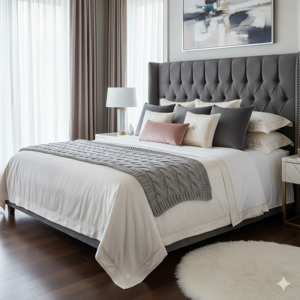 - King-Sized Comfort: If space allows, invest in a king-sized bed with a luxurious, upholstered headboard.