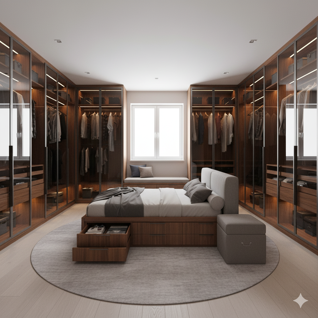 - Walk-in Wardrobes: If space permits, a walk-in closet with ambient lighting enhances organization.