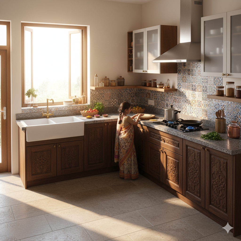 A well-thought-out kitchen layout is the backbone of a smooth cooking experience. Given that Indian meals involve multiple ingredients, utensils, and elaborate cooking processes, a functional design ensures: