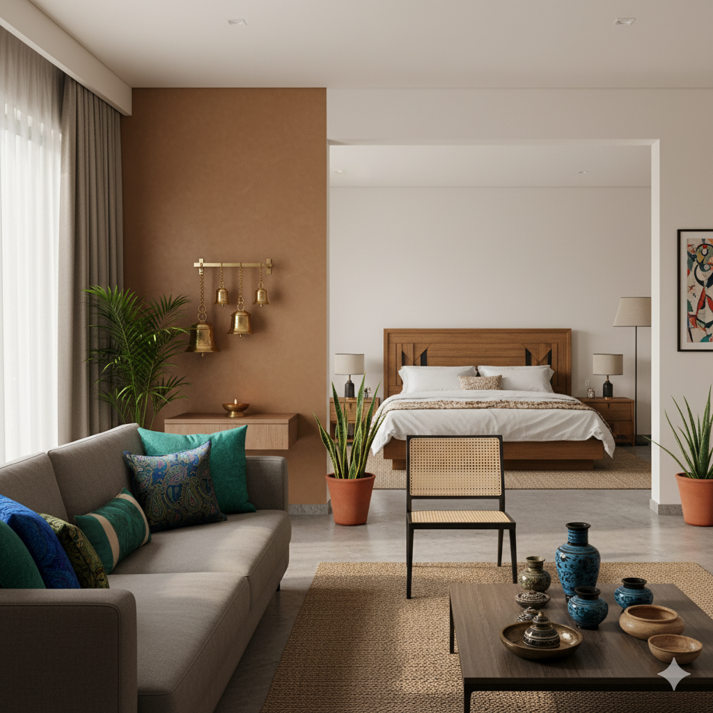 • Regional Decor Integration: A Modern palette should not exclude regional richness. Imagine a minimalist, Modern living room. An antique brass Ganesha idol from the local market can become the sole statement piece. In a Contemporary setting, a commissioned piece of vibrant Warli or Gond art introduces necessary colour and cultural depth. These are thoughtful touches. They keep the design tethered to the city’s soul.