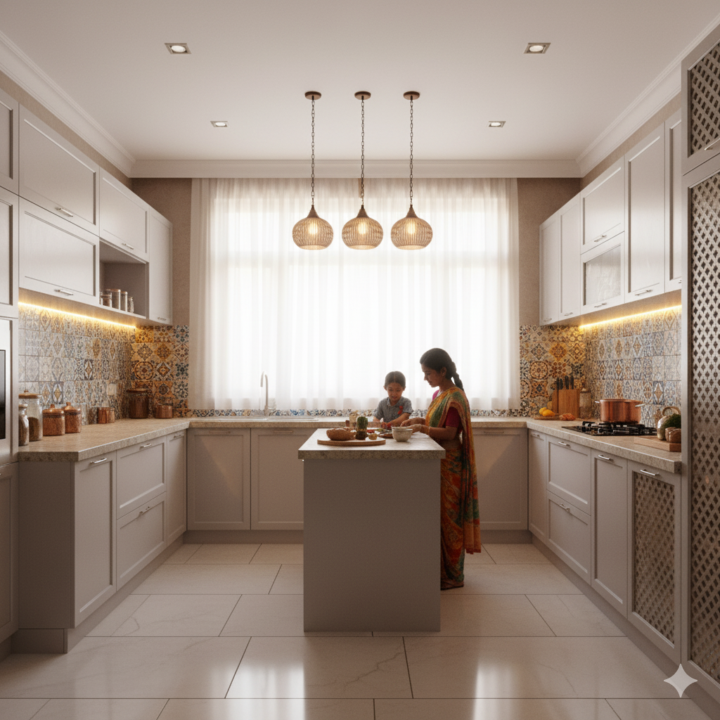 - Add jaali designs or patterned tiles for a hint of Indian artistry.