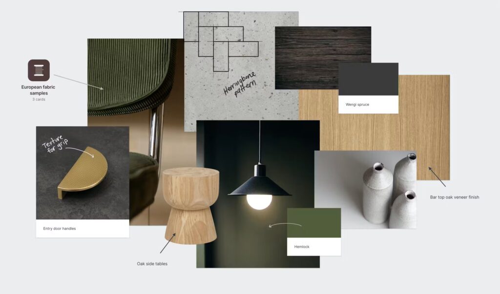 Canva is perfect for DIY moodboards. Upload pictures of tiles, wall paints, sofa fabrics, and combine them into one frame. This way, you’ll see if emerald green curtains actually go with beige walls.